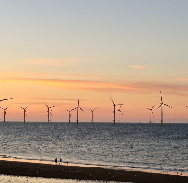 One piece that stands out for me in this collection is Moon Over Sea, which came together almost as quickly as the moment that inspired it. I was sitting on the balcony of the Regency Cinema in Redcar, looking out over the beach. A harvest moon hung low over the water, casting a soft glow across the sea and silhouetting the wind turbines in the distance. There was something magical in that scene—a quiet intensity that demanded to be captured. I rushed back to the studio, still holding onto the feeling of that moment, and started painting straight away. The piece flowed effortlessly, with deep blues and golden reflections falling into place like the memory unfolding on the canvas. That painting resonated with so many people, and I even received two more commissions from it—proof of the deep connection we all share with the sea and its endless stories.